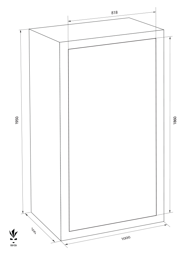 Safe door opening angle 90°, internal hinges, DIN right opening.